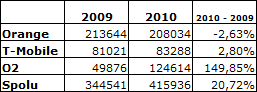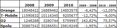Počet odoslaných SMS zákazníkmi dvoch najväčších operátorov, Orange a T-Mobile, sa výrazne znížil, počet SMS odoslaných zákazníkmi O2 sa opäť výrazne zvýšil.