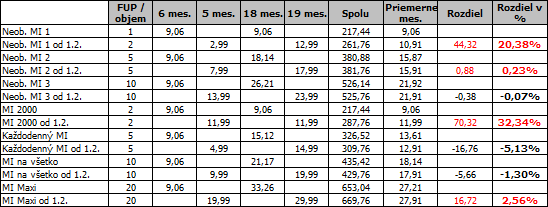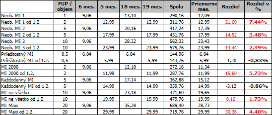 6 / 5 mes. - znížený mesačný poplatok počas prvých šiestich / piatich mesiacov viazanosti u doterajšej / novej akciovej ponuky (všetky ceny sú v eurách s DPH)