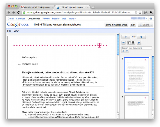 Zobrazenie prílohy z Gmailu pomocou Google Docs Vieweru