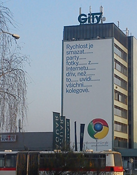 Spoločnosť Google spustila na konci marca vo viacerých českých mestách outdoorovú reklamu na svoj webový prehliadač Chrome.