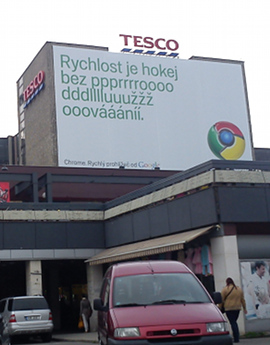 Kampaň propagujúcu rýchlosť Chrome zaregistroval na konci marca jeden z čitateľov DSL.sk v Brne, na veľkých reklamných plochách na budovách a neskôr v citylight vitrínach na zastávkach MHD.
