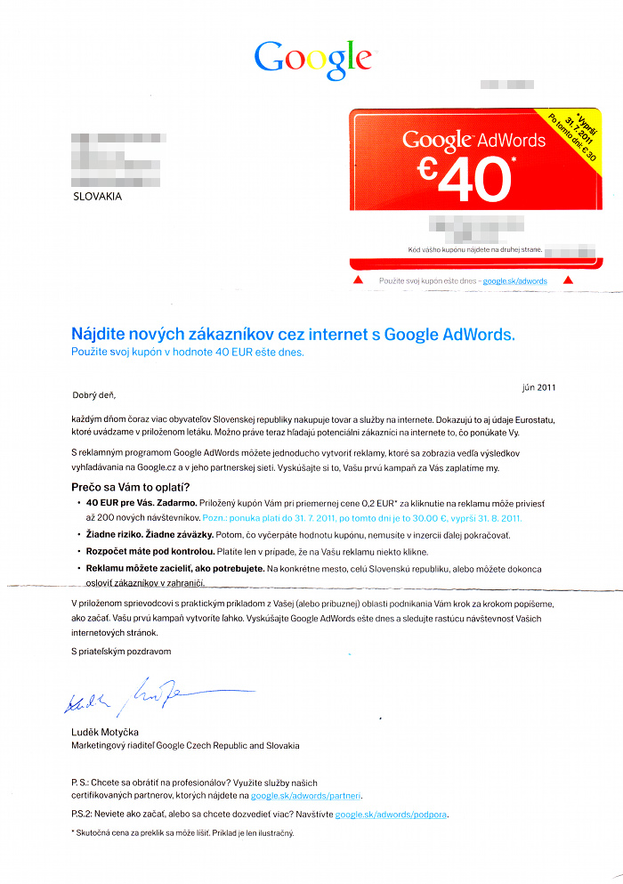 Listy, ktorými Google firmy oslovuje, sú cielené špecificky na slovenské firmy a Slovenskú republiku. Či je kampaň súčasťou kampane vo viacerých krajinách zisťujeme.