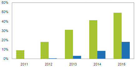 V roku 2015 by mala mať takmer polovica, 49%, nových predaných notebookov podľa IHS iSuppli štvorjadrový procesor a ďalších 18% má mať šesťjadrový procesor.
