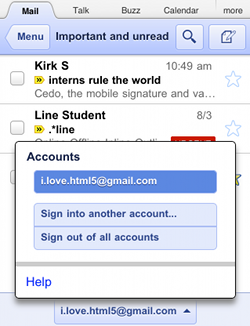 Možnosť prihlásiť sa zároveň k inému účtu respektíve zmeniť aktívny účet je k dispozícii pri dolnom okraji mobilnej verzie stránok Gmailu. Či je podporu využívania viacerých účtov potrebné podobne ako v desktopovej verzii aktivovať na všetkých užívateľom využívaných účtoch nie je z oznámenia jasné.