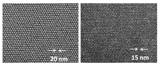 Vyvinutý materiál s hustotou 1.9 a 3.3 Tbit / in2 pod elektrónovým mikroskopom (foto: IMRE)