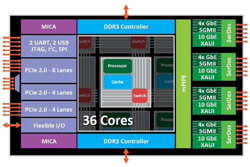 Schéma 36-jadrového procesora TILE-Gx8036 (obrázok: Tilera)