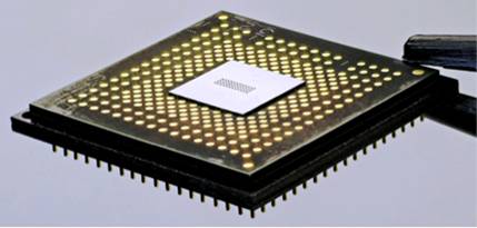 Čip s viditeľnými dierami osadený v kompletnom module (foto: IBM)