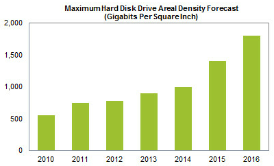 Maximálna hustota uložených dát na pevných diskoch a tým aj ich kapacita bude podľa odhadu spoločnosti IHS iSuppli v najbližších rokoch rásť len pomaly a výraznejšie zvýšenie je možné očakávať až v rokoch 2015 a 2016.