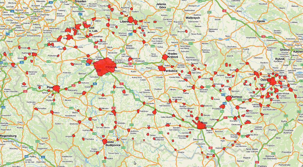 Pokryté lokality so šikmými snímkami na Mapy.cz, kliknite pre zväčšenie (obrázok: Seznam)