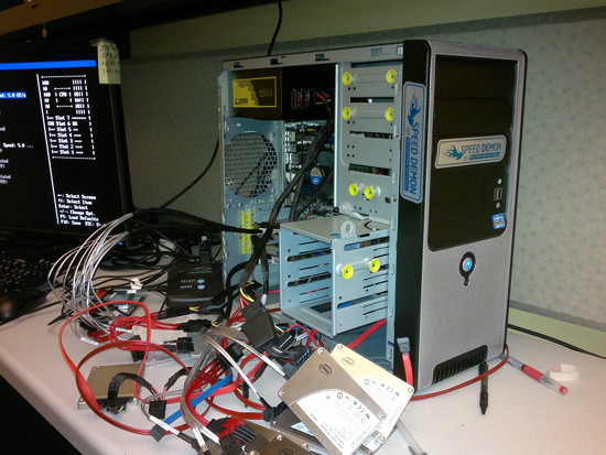 Počítač bol postavený na 3.5 GHz Core i7-2700K s TDP spotrebou až 95 Wattov, v jednotlivých kategóriách s 8 GB alebo 16 GB pamäte, doskou Intel BOXDZ68BC, dvomi SAS / SATA RAID osemportovými kartami Intel RS25DB080, šestnástimi 300 GB SSD diskami Intel 710 v dvoch RAID-0 poliach a jedným systémovým SSD diskom, 120 GB Intel 510.