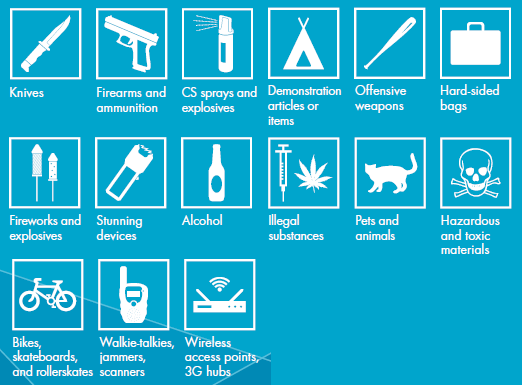 Zákaz využívania personálnych WiFi hotspotov sa nachádza na zozname zakázaných predmetov v hľadiskách medzi tradičnejšími zakázanými predmetmi ako sú strelné zbrane, nože, alkohol, toxické materiály, rušičky a vysielačky.