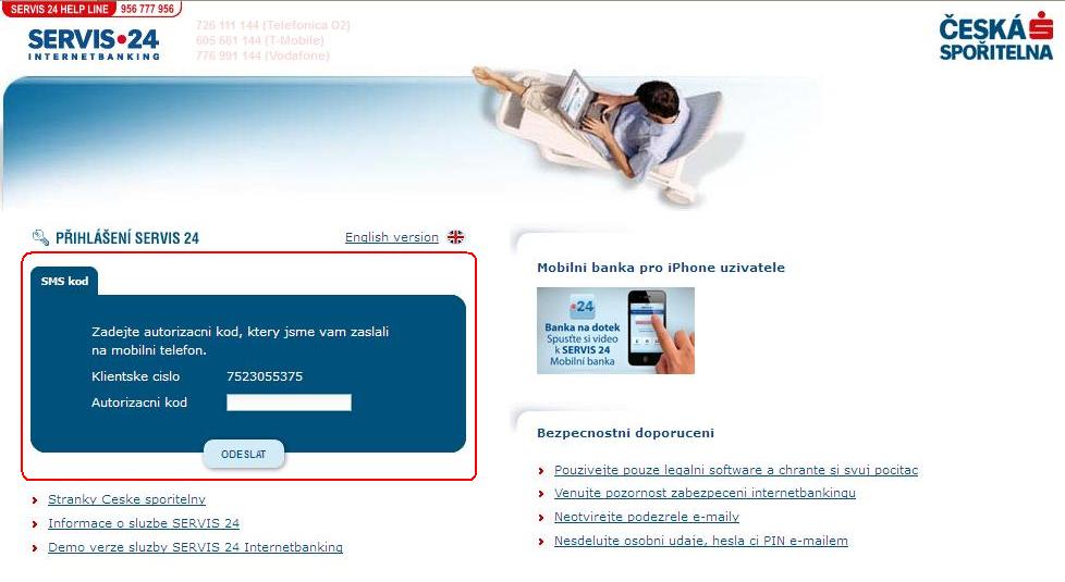 V Českej sporiteľni musí každý užívateľ autorizovať aktívnu odosielanú transakciu buď kódom, ktorý mu banka pošle v SMS, alebo klientským certifikátom. Vírus útočil na zrejme bežnejšie používanú autorizáciu kódom z SMS.