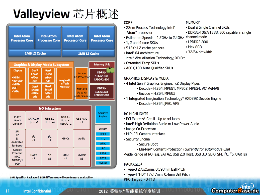 Mikroarchitektúra jadra tejto generácie bude niesť označenie Silvermont, samotný procesor v podobe SoC čipu sa bude volať Valleyview a celá platforma Bay Trail.