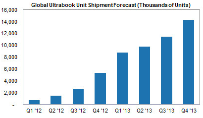 Na celý rok 2012 odhaduje IHS len 10.3 milióna predaných ultrabookov, pričom v posledných troch mesiacoch roka sa má predať viac ako polovica zo všetkých predaných ultrabookov v tomto roku.