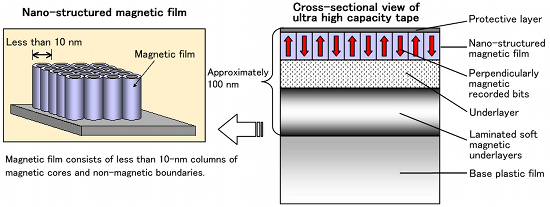 Štruktúra vyvinutej 50 TB pásky (obrázok: Hitachi Maxell)