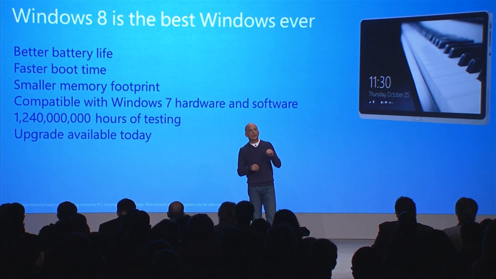 Presne tak, gro bolo o Windows RT a tabletoch. Zase na druhú stranu, keby prezentovali využitie na klasickom PC, nastala by blamáž minimálne na úrovni BSOD pri inštalácii skeneru do Windows 98.