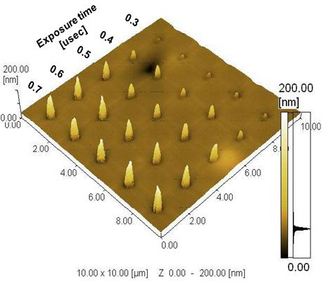 Výška vzniknutého konvexného útvaru po excitovaní laserom podľa dĺžky excitácie v mikrosekundách (obrázok: Fujifilm)