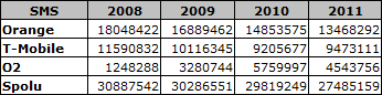 to vam to uz uplne mete na gebulach? to bud nechcete aby si citatel pozrel tie pocty sms alebo ho chcete skratka tyrat? jak mozte tresnut do tabulky taketo miliony bez akehokolvek formatovania, oddelovania tisicok..GRC ty kokso!!!