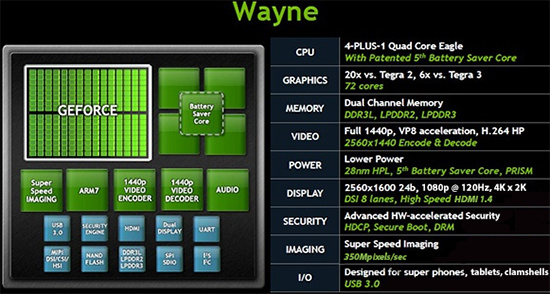 Procesové parametre Tegra 4 s kódovým označením Wayne unikli prvýkrát už v apríli, aktuálne informácie potvrdzujú štyri plus jedno Cortex-A15 jadro a výrobu 28-nm procesom.