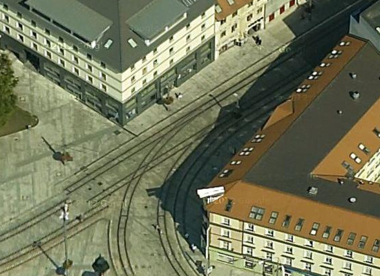 Nie, tak su spravene trate v Bratislave. Ked tam prijde elektricka, zjavi sa spoza rohu zeriav a prelozi ju z jednej kolaje na druhu. Bratislava tym demonstruje svoju technologicku vyspelost.