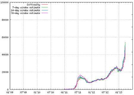 Výkon zapojeného hardvéru realizujúceho tzv. Bitcoin mining potrebný pre funkčnosť tejto decentralizovanej digitálnej meny v minulom týždni v niektorých časoch už podľa štatistík bitcoin.sipa.be dosiahol viac ako 60 terahashov za sekundu.