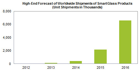 V budúcom roku, kedy sa očakáva spustenie bežného predaja smart okuliarov Google Glass, sa podľa IHS predá okolo pol milióna kusov. V roku 2015 by sa už mali predať cca 2 milióny a v roku 2016 6.6 milióna kusov, spolu do konca roku 2016 by sa tak malo predať 9.4 milióna kusov.