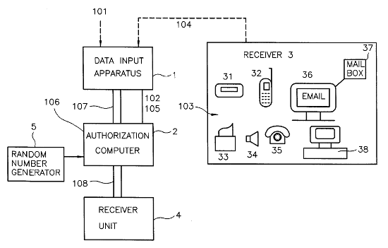 Schéma dvojfaktorovej autentifikácie z patentu Dotcoma