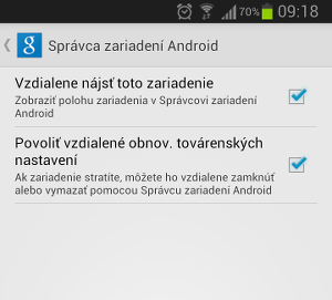 Nastavenia Android Device Manager na konkrétnom zariadení