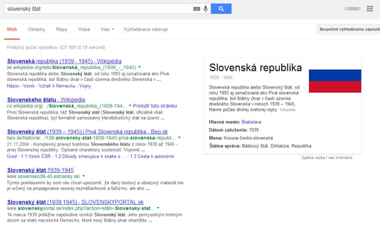 najprv som sa zlakol tej ukazky znalosti, lebo to vyzeralo tak ze cerpaju z necyklopedie, ale podla vyhladavania "Slovensky stat" to je vlastne spravne, trocha zavadajuce, ale spravne :D
