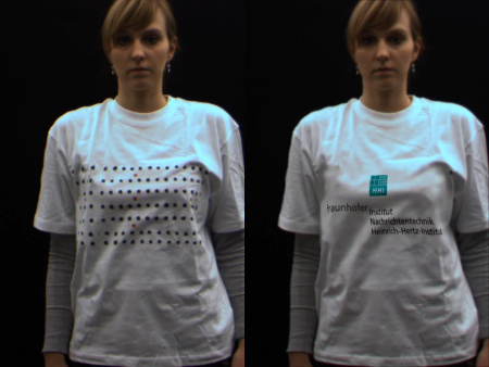 softver neanalyzuje pokrcenie siat, ale bodkovany vzor na tricku, ktory tam musi byt stale. a nahradi ho texturou. vola sa to augmented reality a existuje to uz velmi davno, len chlapci z Fraunhoferovho institutu nasli viacmenej prakticke vyuzitie.......