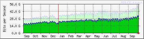 Podľa grafov záťaže liniek sa maximálna rýchlosť za posledných dvanásť mesiacov zvýšila takmer dvojnásobne z 28 Gb/s.