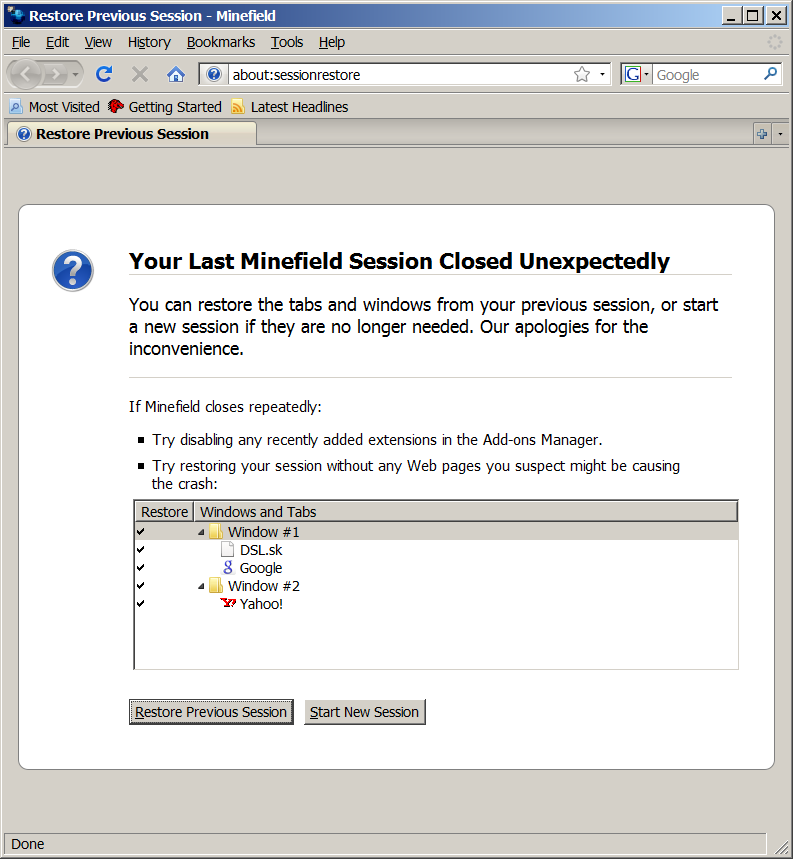 Re: Firefox 3.1 s prepracovanou obnovou session