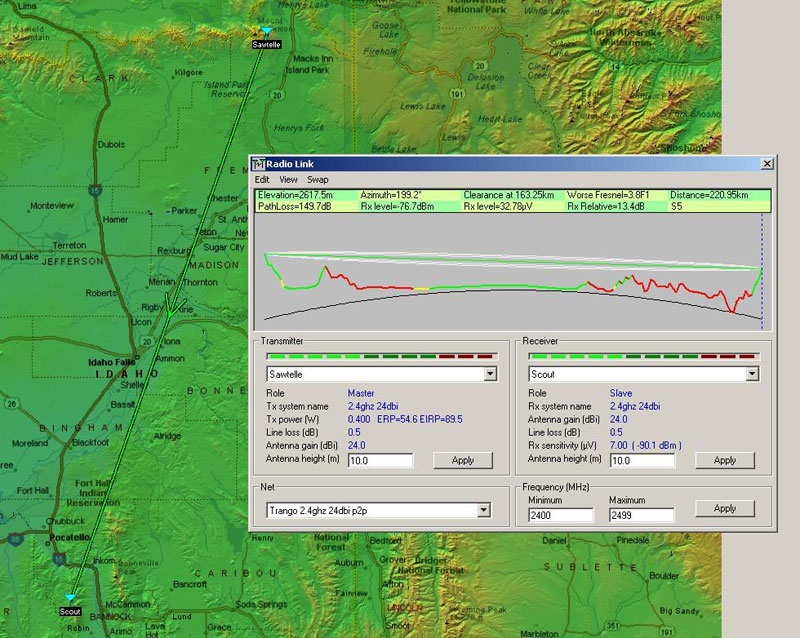 Spojenie bolo uskutočnené na vzdialenosť 137.2 míľ (viac ako 220 km) medzi dvomi bodmi umiestnenými medzi vrchmi Sawtelle Mountain a Scout Mountain.