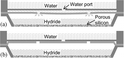 Schéma palivového článku s a, otvorenou membránou a b, uzatvorenou membránou (foto: Journal of Microelectromechanical Systems / New Scientist)