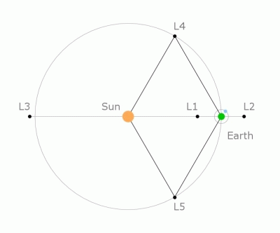 mate tam preklep "vo vzdialenosti 400 až 800 miliónov kilometrov". v takej vzdialenosti obieha slnko jupiter... a tam urcite nebudu teleskopy obiehat lagrangeov bod.