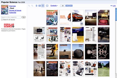 Užívatelia majú napríklad možnosť zobraziť si náhľady stránok časopisov alebo kníh patriacich medzi voľné diela bez uplatňovaných autorských práv, ktoré sú k dispozícii voľne bez obmedzení. Po kliknutí na vybranú stránku sa táto zobrazí v plnej veľkosti.