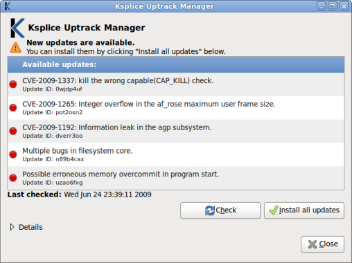 Ksplice Uptrack Manager (screenshot: Ksplice)