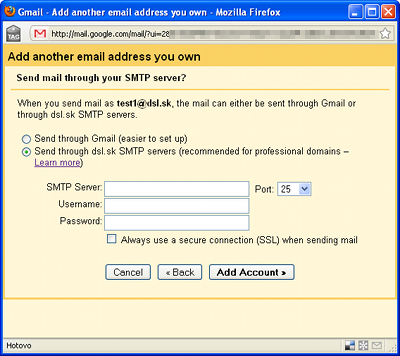 Nastavenie SMTP servera pre inú adresu využívanú cez Gmail