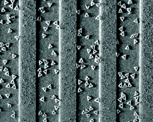 IBM a Caltech aktuálne oznámili vyvinutie techniky pre vytváranie a umiestňovanie DNA štruktúr, tzv. DNA origami, na základnej pravidelnej štruktúre vytvorenej dnešnými litografickými výrobnými technológiami čipov napríklad z SiO2.