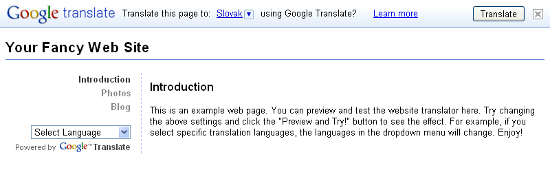 Spoločnosť Google v stredu sprístupnila nový nástroj pre tvorcov webových stránok, ktorý umožňuje webovej stránke sa samej preložiť, ak je v inom jazyku ako je jazyk návštevníka.