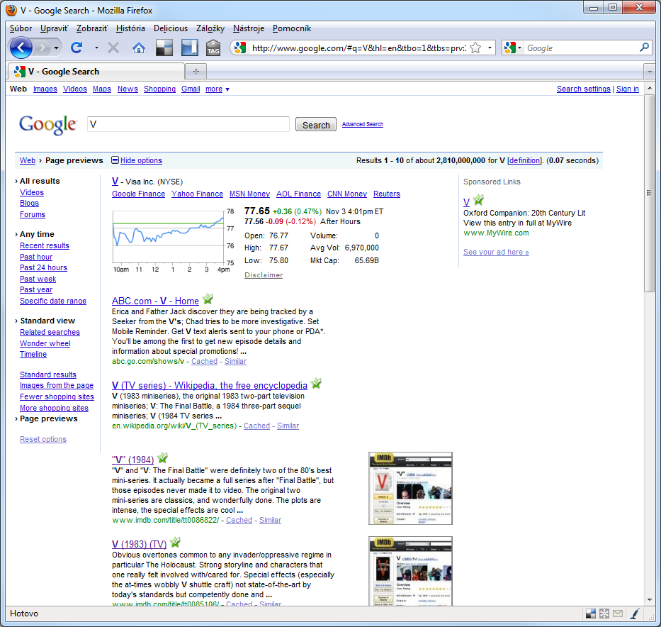 Spoločnosť Google rozšírila funkčnosť svojho vyhľadávača a medzi rozšírené voľby zobrazovania výsledkov vyhľadávania pridala možnosť zobrazovať náhľady na nájdené stránky.