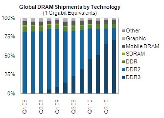 V druhom štvrťroku 2010 bude už kapacita dodávaných DDR3 pamätí tvoriť viac ako 50%, presnejšie 50.9%, všetkých DRAM pamätí vrátane DDR a SDRAM pamätí, grafických pamätí, mobilných DRAM pamätí pre mobily a smartphony a ostatných typov.