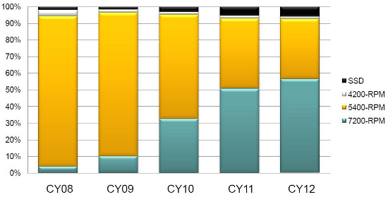 Kým v tomto roku sa 7200 RPM disky nachádzali v 10% nových notebookov a netbookov, v budúcom roku to už má byť vo viac ako 30%, v roku 2011 vo viac ako 50% a v roku 2012 vo viac ako 55% nových notebookov a netbookov.