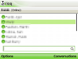 Oficiálny Java klient od ICQ v základnom pohľade zobrazuje zoznam kontaktov s voľbou zobrazovania skupín a voľbou zobrazovania všetkých alebo len online kontaktov.