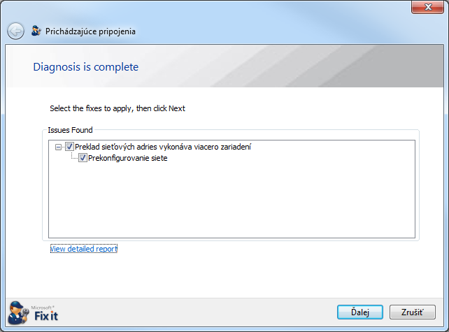 V niektorých prípadoch nástroje z Fix it Center odhalia aj pomerne komplikované potenciálne problémy, napríklad pri našom teste nástroj na hľadanie problémov pri pripájaní k testovanému PC cez sieť detekoval viacnásobný preklad IP adries pomocou NAT.