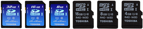 Najrýchlejšie SD pamäťové karty podporujúce UHS predstavila spoločnosť Toshiba. Jej nové SD karty sú typu SDHC, nie najnovšieho SDXC, a podporujú maximálnu reálnu rýchlosť čítania 95 MB/s a rýchlosť zápisu 80 MB/s. Nové microSDHC Toshiby podporujú maximálnu rýchlosť čítania 40 MB/s a rýchlosť zápisu 20 MB/s.