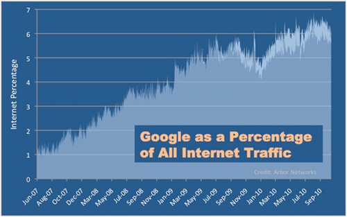 Spoločnosť Google v súčasnosti generuje priemerne už 6.4% všetkej internetovej dátovej prevádzky.
