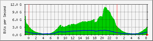 Porovnanie dátovej prevádzky GTS v SIX 25. októbra (červeným) a v pondelok pred týždňom 18. októbra (zeleným)
