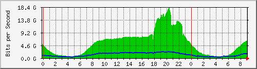 Maximum pripojenia GTS zabezpečujúceho konektivitu huste.sk v SIX včera dosiahlo 18.1 Gbps, pričom počas trvania hokejových zápasov od cca 18:00 do 20:40 je jasne viditeľný výrazný skok v úrovni vyťaženia pripojenia GTS.