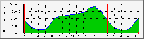 Doterajším maximom bolo 54.4 Gbps, v stredu maximum krátko po 20. hodine dosiahlo 56.5 Gbps.
